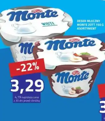Ta promocja jest dostępna w różnych sklepach. Przejrzyj wszystkie dostępne produkty, żeby otrzymać najtańszą ofertę na Zott Monte. Jeśli chcesz dowiedzieć się, czy dany produkt jest dostępny na lepszej przecenie w innym sklepie, zajrzyj do kategorii „Supermarkety". Te oferty również mogą cię zainteresować: Zott Monte Snack, Monte Snack Zott i Deser Monte Zott.