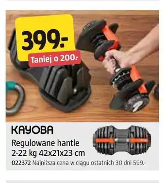 Sprawdź najtańszy produkt dostępny we wszystkich ofertach promocyjnych! Jeśli chcesz wiedzieć, czy sklep Jula ma najwyższy rabat dla oferty na KAYOBA Regulowane hantle 2-22 kg 42x21x23 cm, porównaj ją z promocjami innych sklepów w zakładce Kategorie.
