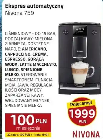 Teraz w promocji Ekspres do kawy Nivona w Kakto. Oferta ważna od 1-03 do 31-03.