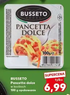 Teraz w promocji BUSSETO Pancetta dolce w kostkach 100 g opakowanie w Kaufland. Oferta ważna od 20-04 do 22-04.