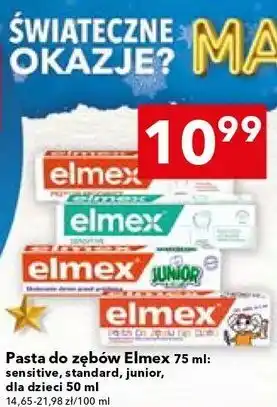 Teraz w promocji Pasta do zębów Elmex 75 ml: sensitive, standard, junior, dla dzieci 50 ml w Lewiatan. Oferta ważna od 12-12 do 24-12.