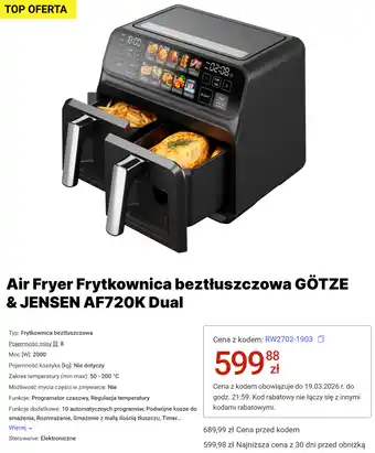Teraz w promocji Air Fryer Frytkownica beztłuszczowa GÖTZE & JENSEN AF720K Dual w Media Expert. Oferta ważna od 5-03 do 19-03.