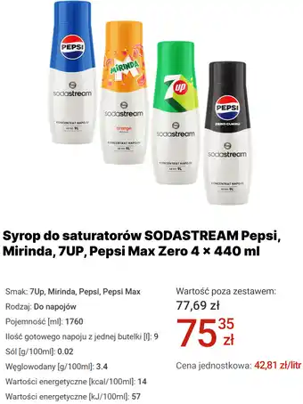 Syrop do saturatorów SODASTREAM Pepsi, Mirinda, 7UP, Pepsi Max Zero 4 x 440 ml