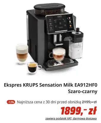 Teraz w promocji Ekspres KRUPS Sensation Milk EA912HF0 Szaro-czarny w Media Markt. Oferta ważna od 9-03 do 4-04.