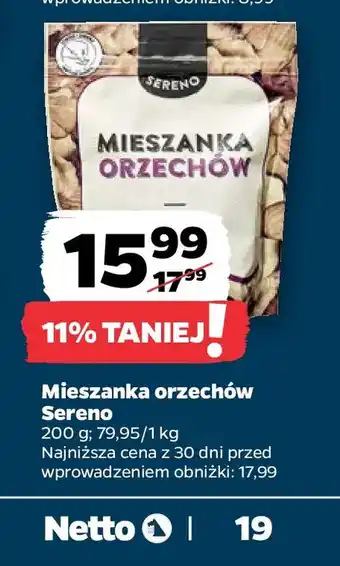 Teraz w promocji Mieszanka orzechów Sereno w Netto. Oferta ważna od 27-12 do 3-01.