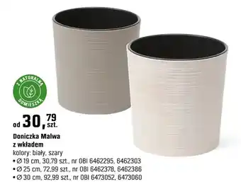 Teraz w promocji Doniczka Malwa z wkładem Ø 30 cm w OBI. Oferta ważna od 18-03 do 31-05.