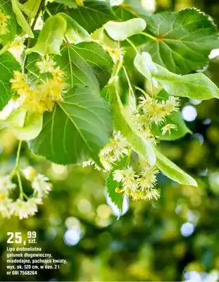 Teraz w promocji Lipa drobnolistna gatunek długowieczny, miododajne, pachnące kwiaty w OBI. Oferta ważna od 18-03 do 31-05.