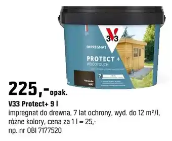 Teraz w promocji V33 Protect+ impregnat do drewna 9 l w OBI. Oferta ważna od 18-03 do 31-05.