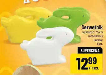 Ta promocja jest dostępna w różnych sklepach. Przejrzyj wszystkie dostępne produkty, żeby otrzymać najtańszą ofertę na Serwetnik wysokość: 7.5 cm różne kolory. Jeśli chcesz dowiedzieć się, czy dany produkt jest dostępny na lepszej przecenie w innym sklepie, zajrzyj do kategorii „Supermarkety". Te oferty również mogą cię zainteresować: Zając różne kolory wysokość: 20.5 cm, Jajko wysokość: 13 cm różne kolory i Zając wysokość: 21 cm.