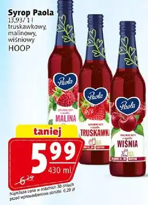 Promocje na Syrop paola truskawkowy, malinowy, wiśniowy w przyszłym tygodniu