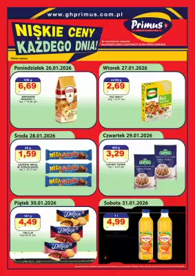 Każdego tygodnia publikowana jest nowa gazetka z kategorii Supermarkety od Primus. Na tej stronie zawsze widoczna jest najświeższa gazetka z okresem ważności od 26-01-2026 do 31-01-2026. Dzięki temu jesteś na bieżąco z lokalnymi aktualizacjami i dokładnie wiesz, kiedy nowa gazetka staje się dostępna w Nidzica.