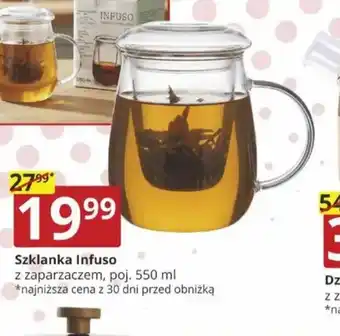 Ta promocja jest dostępna w różnych sklepach. Przejrzyj wszystkie dostępne produkty, żeby otrzymać najtańszą ofertę na Szklanka Infuso. Jeśli chcesz dowiedzieć się, czy dany produkt jest dostępny na lepszej przecenie w innym sklepie, zajrzyj do kategorii „Kuchnia i Łazienka". Te oferty również mogą cię zainteresować: Szklanka, Szklanka i Szklanka.