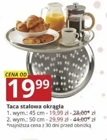 Ta promocja jest dostępna w różnych sklepach. Przejrzyj wszystkie dostępne produkty, żeby otrzymać najtańszą ofertę na Taca stalowa okrągła. Jeśli chcesz dowiedzieć się, czy dany produkt jest dostępny na lepszej przecenie w innym sklepie, zajrzyj do kategorii „Kuchnia i Łazienka". Te oferty również mogą cię zainteresować: Taca okrągła, Taca dekoracyjna i Taca prostokątna.