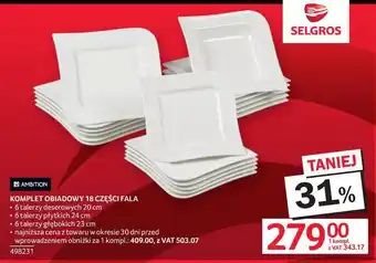 Teraz w promocji Komplet obiadowy 18 części Fala w Selgros. Oferta ważna od 22-01 do 4-02.