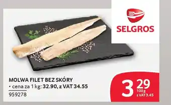 Teraz w promocji Molwa filet bez skóry w Selgros. Oferta ważna od 9-04 do 22-04.