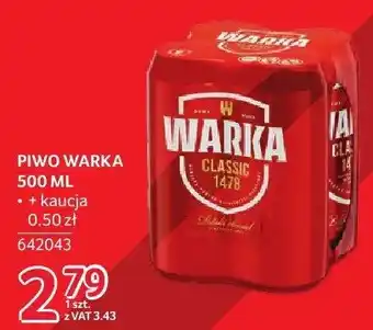 Teraz w promocji Piwo Warka 500 ml + kaucja 0.50 zł w Selgros. Oferta ważna od 5-03 do 18-03.