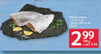 Ta promocja jest dostępna w różnych sklepach. Przejrzyj wszystkie dostępne produkty, żeby otrzymać najtańszą ofertę na Trewal tusza. Jeśli chcesz dowiedzieć się, czy dany produkt jest dostępny na lepszej przecenie w innym sklepie, zajrzyj do kategorii „Supermarkety". Te oferty również mogą cię zainteresować: Trewal tusza, Trewal Manta i Trewal wędzony.