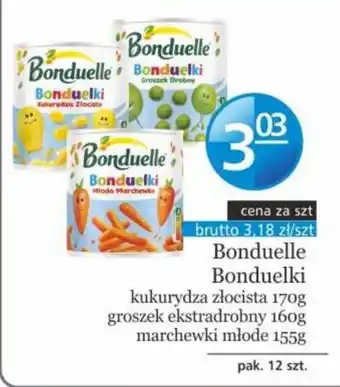 Ta promocja jest dostępna w różnych sklepach. Przejrzyj wszystkie dostępne produkty, żeby otrzymać najtańszą ofertę na Bonduelle Bonduelki. Jeśli chcesz dowiedzieć się, czy dany produkt jest dostępny na lepszej przecenie w innym sklepie, zajrzyj do kategorii „Inne sklepy". Te oferty również mogą cię zainteresować: Bonduelle, Groszek Bonduelle i Bonduelle fasola.