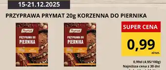 Teraz w promocji Przyprawa Prymat korzenna do piernika 20g w Supeco. Oferta ważna od 15-12 do 21-12.