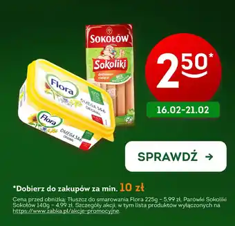 Teraz w promocji Tłuszcz do smarowania Flora / Parówki Sokoliki Sokołów w Żabka. Oferta ważna od 15-02 do 21-02.